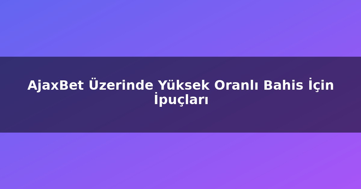 AjaxBet Üzerinde Yüksek Oranlı Bahis İçin İpuçları